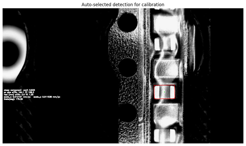 Also cool, with a known part size- like this 0805 cap- we can use the bounding box to calculate the camera's pixel/mm scaling factor: